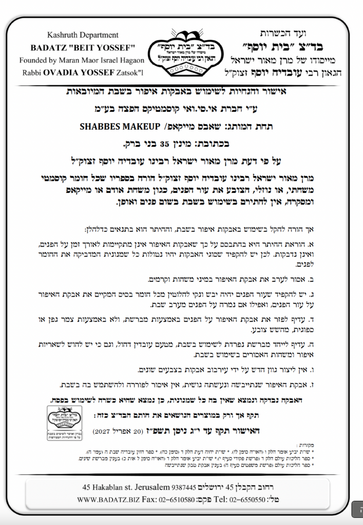 כשר למהדרין לשבת! Shabbesmakeup כשר למהדרין לשימוש במהלך שבת וחג.